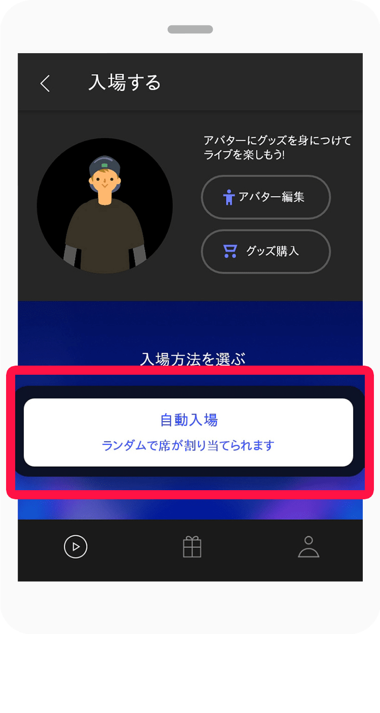 番組詳細から[入場する]を押して番組に入場してください。